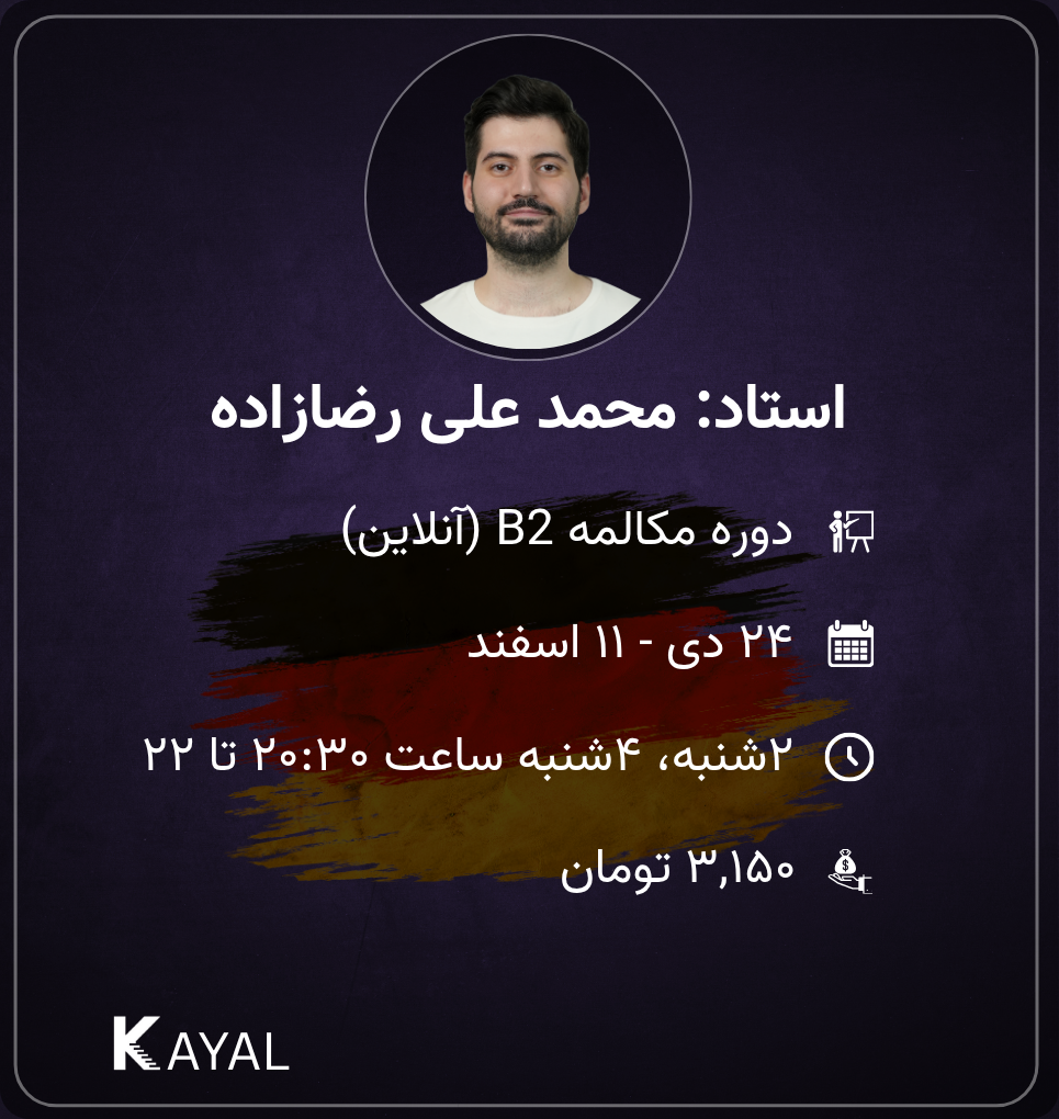 تمرين مهارت “مكالمه” براى شما مهم است و ميخواهيد از دانش زبان خود در ارتباط با افراد آلمانى زبان نهايت استفاده را ببريد‼️